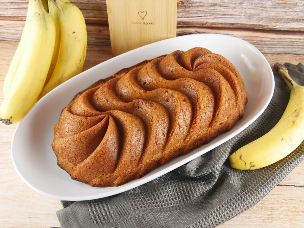Ihr könnt das Bananenbrot in einer ganz normalen 30-cm-Kastenform backen. Da ich ja so einen Fabel für außergewöhnliche Backformen habe, habe ich allerdings für die Fotos diese Form LINK * von Nordic Wear verwendet. Hat super geklappt da die Form zwar kürzer dafür aber breiter ist.