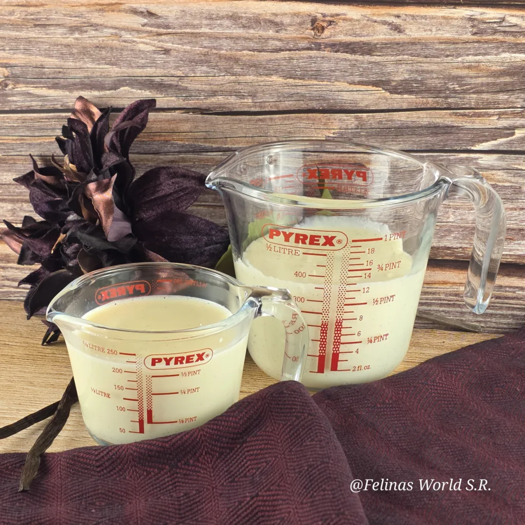 Zubereiten könnt ihr die Soße im Thermomix® bzw. im Monsieur Cuisine®. Natürlich kann man Vanille-Soße auch in Topf auf dem Herd zubereiten. Hierbei muss man die genaue Temperierung beachten damit das Eigelb nicht gerinnt. Bisher habe ich diese Variante noch nicht getestet. Sobald ich das gemacht habe werde ich euch diese Variante natürlich hier nachreichen. Solltet ihr das Rezept vorher in der Variante im Topf benötigen schreibt mich gerne an und ich werde schauen das ich euch das Rezept so schnell wie möglich zur Verfügung stelle.