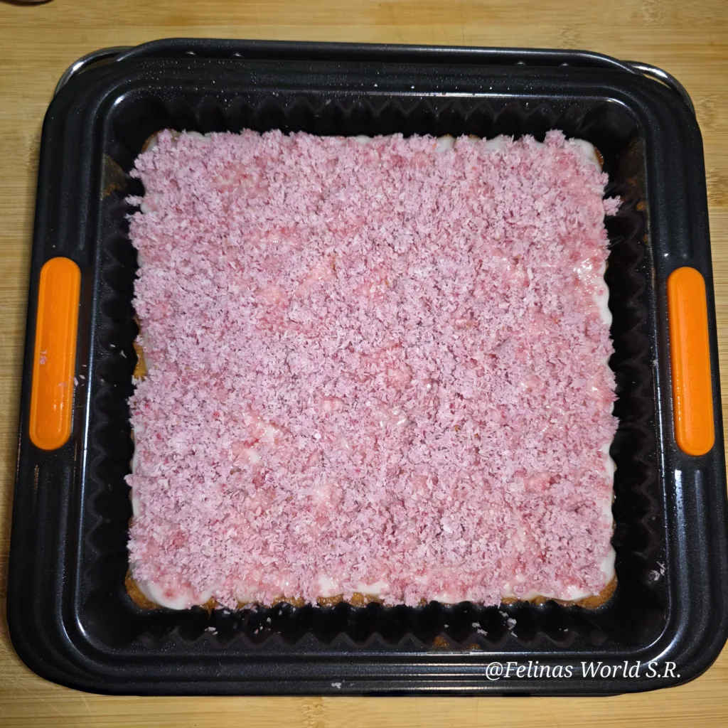 - direkt im Anschluss Himbeeren bzw. Heidelbeeren und Kokosflocken in den Multizerkleinerer der Küchenmaschine geben und 10 Sek / Stufe 3 vermixen → wenn die Küchenmaschine keinen Multizerkleinerer hat einfach den normalen Multizerkleinerer nehmen95 gr Kokosraspeln, 50 gr Himbeeren oder Heidelbeeren