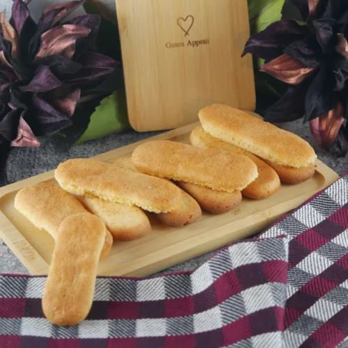 Anschließend werden die Löffelbiskuits einfach ausgebacken und dann mindestens 24 Stunden offen stehen gelassen damit alle Restfeuchtigkeit voll abdampfen kann bevor Sie bis zur Verwendung in Gebäckdosen aufbewahrt werden können.